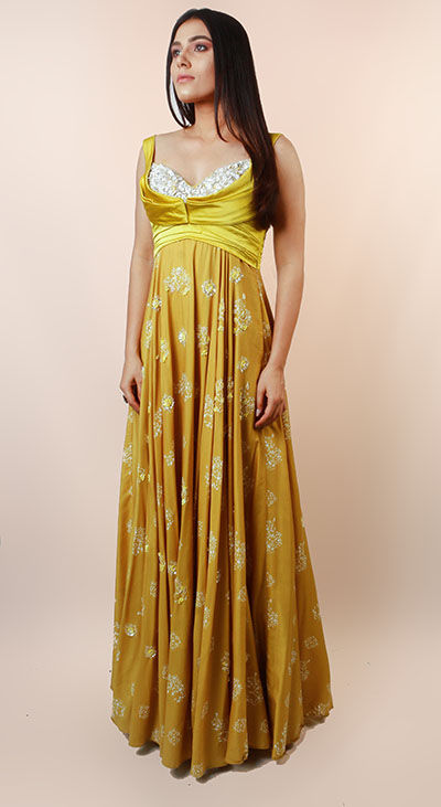 Mayuri is an Indian designer based in Indore known for her detailed embellishment and creating a collection belongs to a story or a concept. Her collection is an act of presenting Indian rich craftsmen ship encapsulated with western touch, while also keeping it extremely modern. Mayuri creates clothing which she discover and line them up on what’s trending in market. The brand delivers an experience that’s positive, confident, memorable and unexpected artistic piece. The label Mayuri Raghuvanshi talks about deep thinking of concepts resulting in an artistic couture garment.